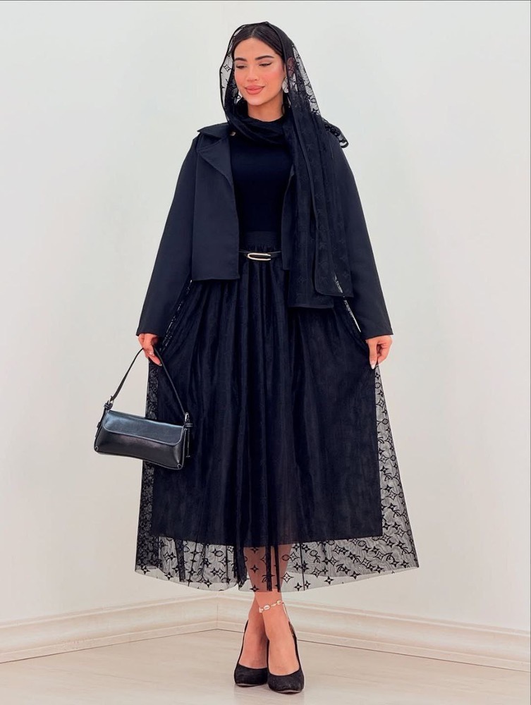 (کت + دامن + شال) جنس پرشیا + تور گیپور تک رنگ ژورنالی فری سایز مناسب 36 تا 42 (قد کت ۵۰ – دامن ۹۰) (شال ۱۶۰*۶۷)